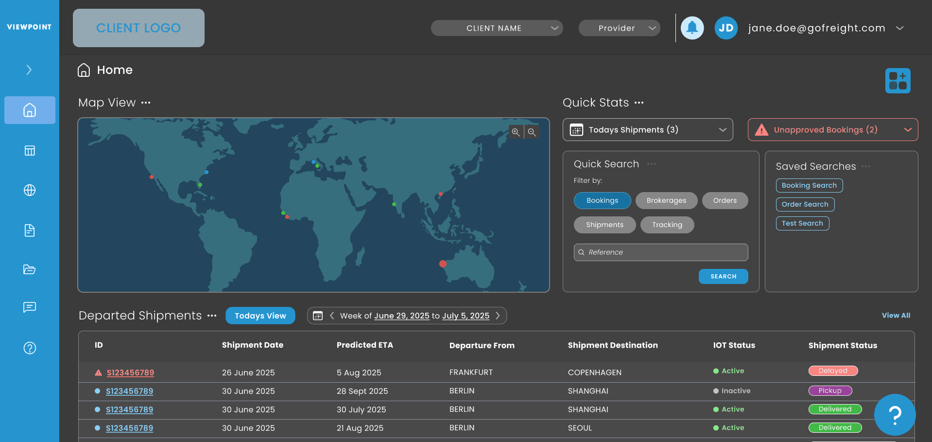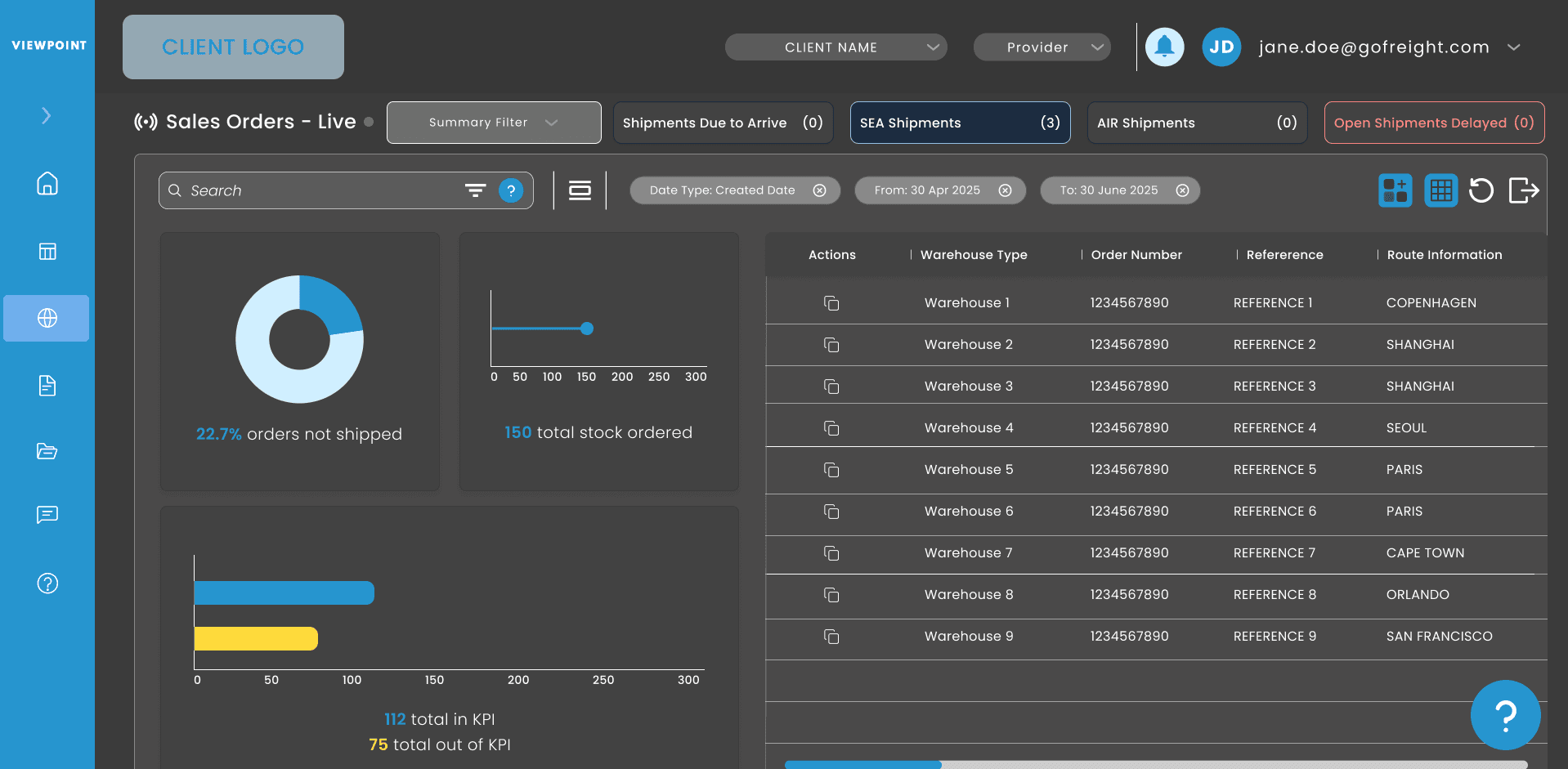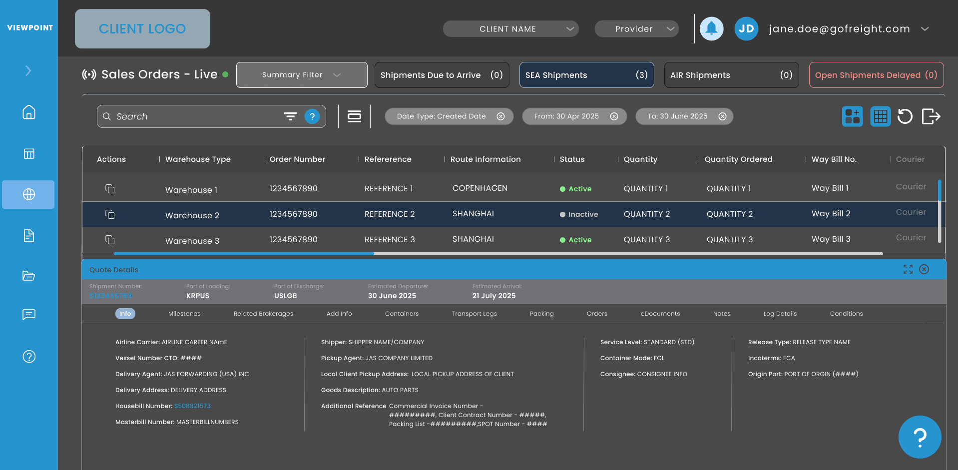 A floating, resizable map interface that syncs with the shipment grid bridges the gap between abstract data and imagery. This multi-layered workspace allows users to track shipment details through pop-ups without losing their place in the data set.